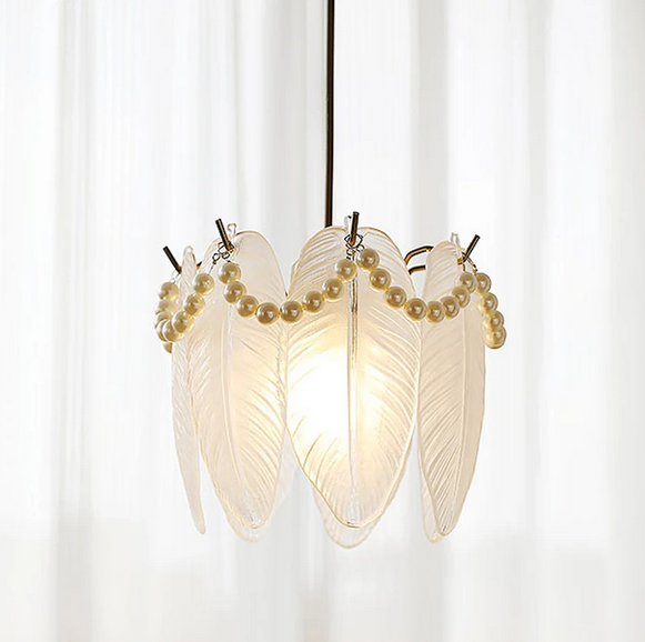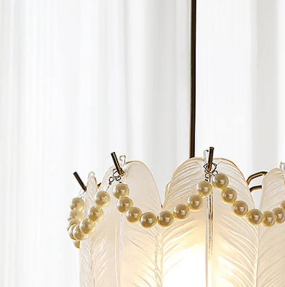 Lampe Suspendue Française Luxueuse en Verre et Perles, Abat-Jour, Luminaire Décoratif d’Nik, Idéal pour une Salle à Manger ou une Chambre à Coucher